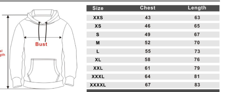 Size: XXS, XS, S, M, L, XL, XXL, XXXL, 4XL, 5XL, 6XL