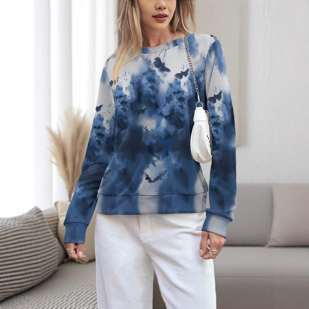 Women's 3D Printed Round Neck Pullover Leisure Loose Sweater